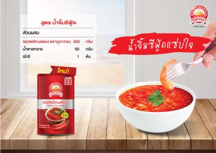 สูตรน้ำจิ้มซีฟู้ด ดาวน์โหลดสูตร วัตถุดิบและส่วนผสม 1. ซอสพริกบดดอง ตราภูเขาทอง 400 กรัม 2. น้ำตาลทราย 50 กรัม 3. ผักชี (หัั่นละเอียด) 1 ต้น